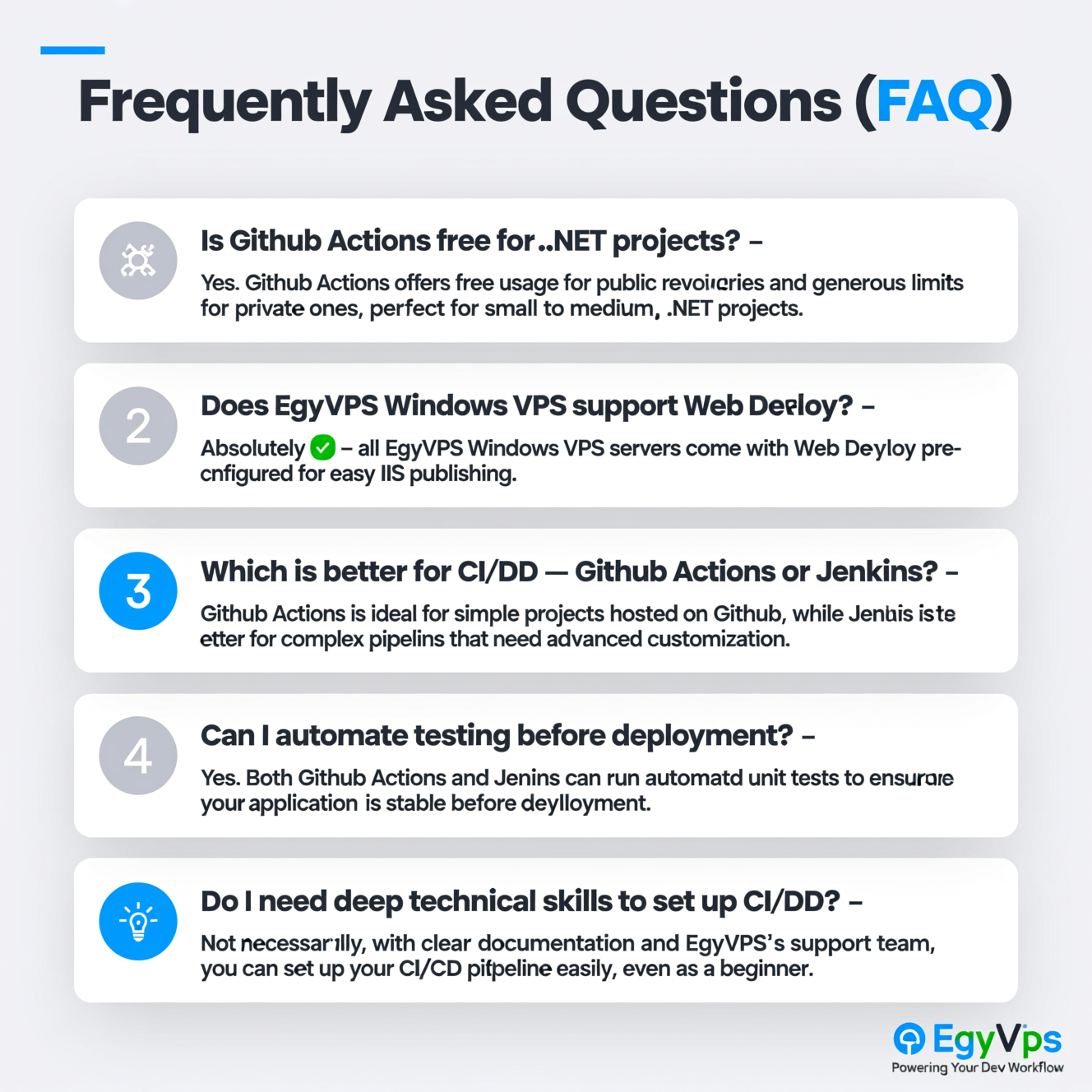 اكتشف كيف يمكنك أتمتة نشر تطبيقات C# و.NET باستخدام GitHub Actions أو Jenkins على خوادم Windows VPS من EgyVPS لتسريع التطوير وضمان أداء مستقر وآمن لتطبيقاتك.