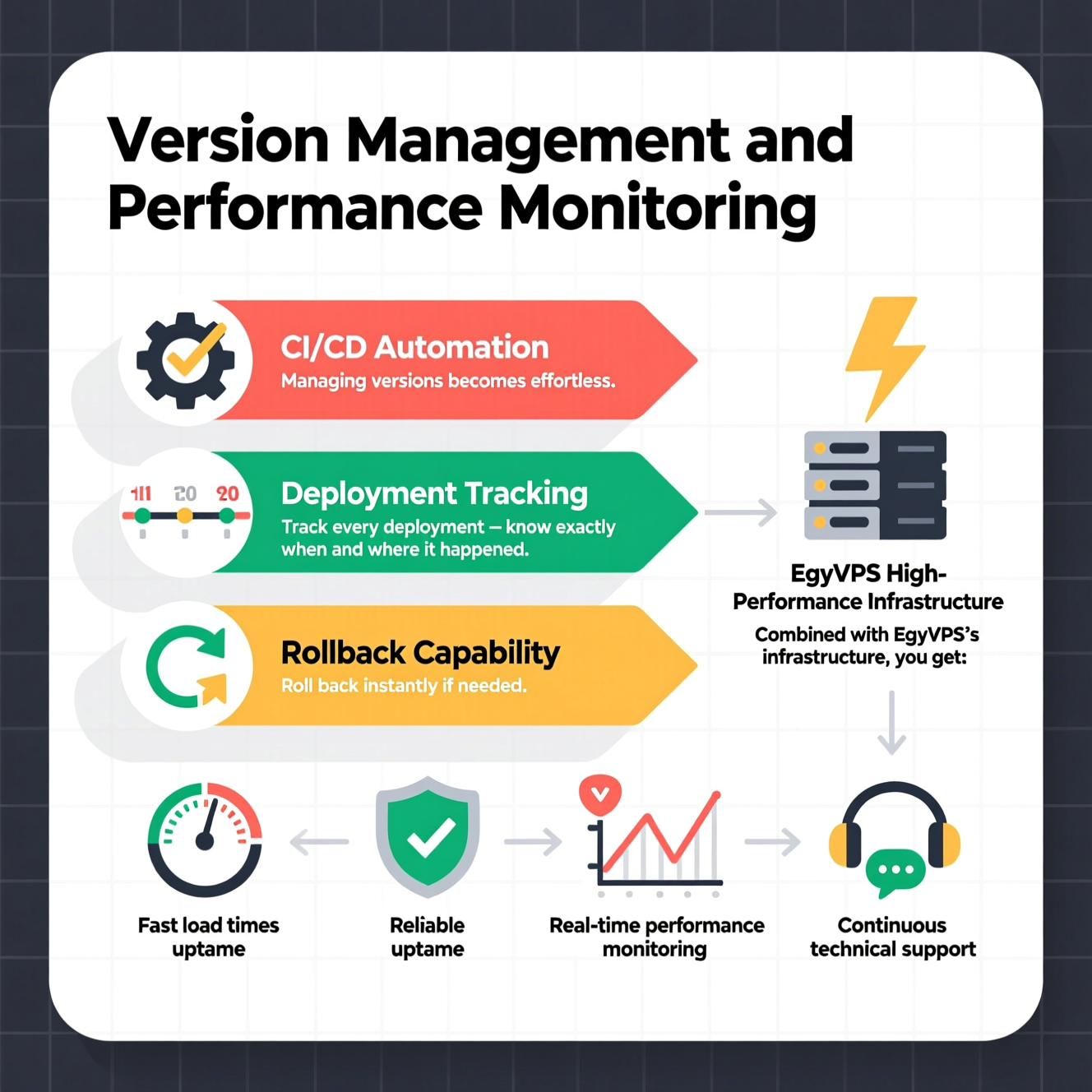 ومن خلال خوادم EgyVPS Windows VPS، تقدر تربط أدواتك مباشرة بخوادم الاستضافة وتشغل عملية النشر تلقائيًا بمجرد تحديث الكود — ببساطة، تطوير أسرع، أخطاء أقل، وتجربة أكثر احترافية.