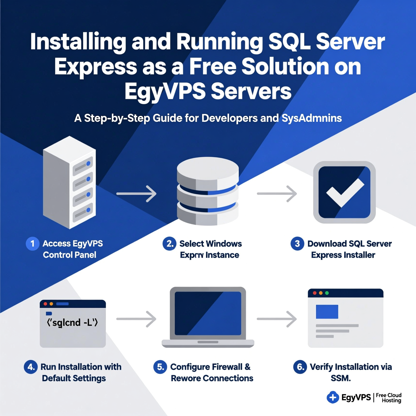 في هذا الدليل، سنرشدك خطوة بخطوة لتثبيت SQL Server Express على خادم EgyVPS، كيفية إعداد الاتصال عن بُعد، وإدارة قواعد البيانات بكفاءة وأمان. سواء كنت مطورًا جديدًا أو ترغب في تشغيل تطبيق صغير، فهذا الدليل سيجعل العملية سهلة وواضحة.