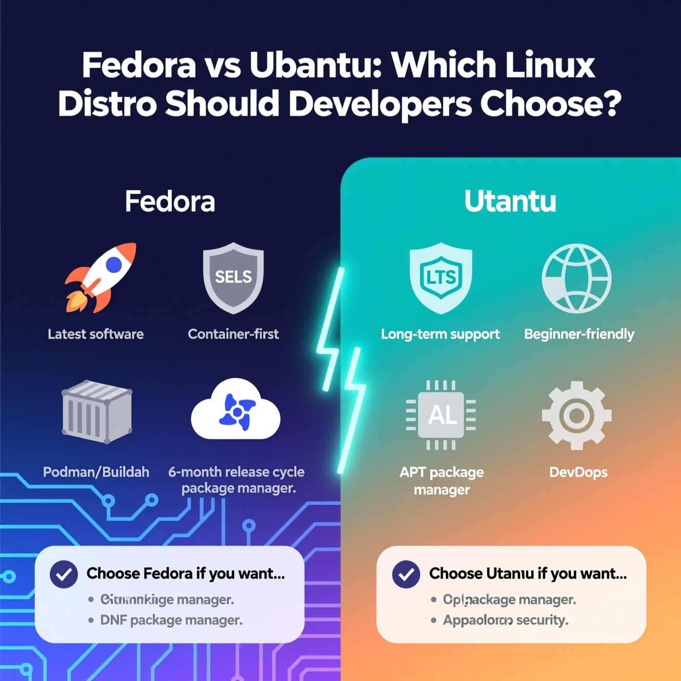 Fedora للأدوات الحديثة والتقنيات المتطورة، Ubuntu للاستقرار وسهولة الاستخدام والدعم طويل الأمد.