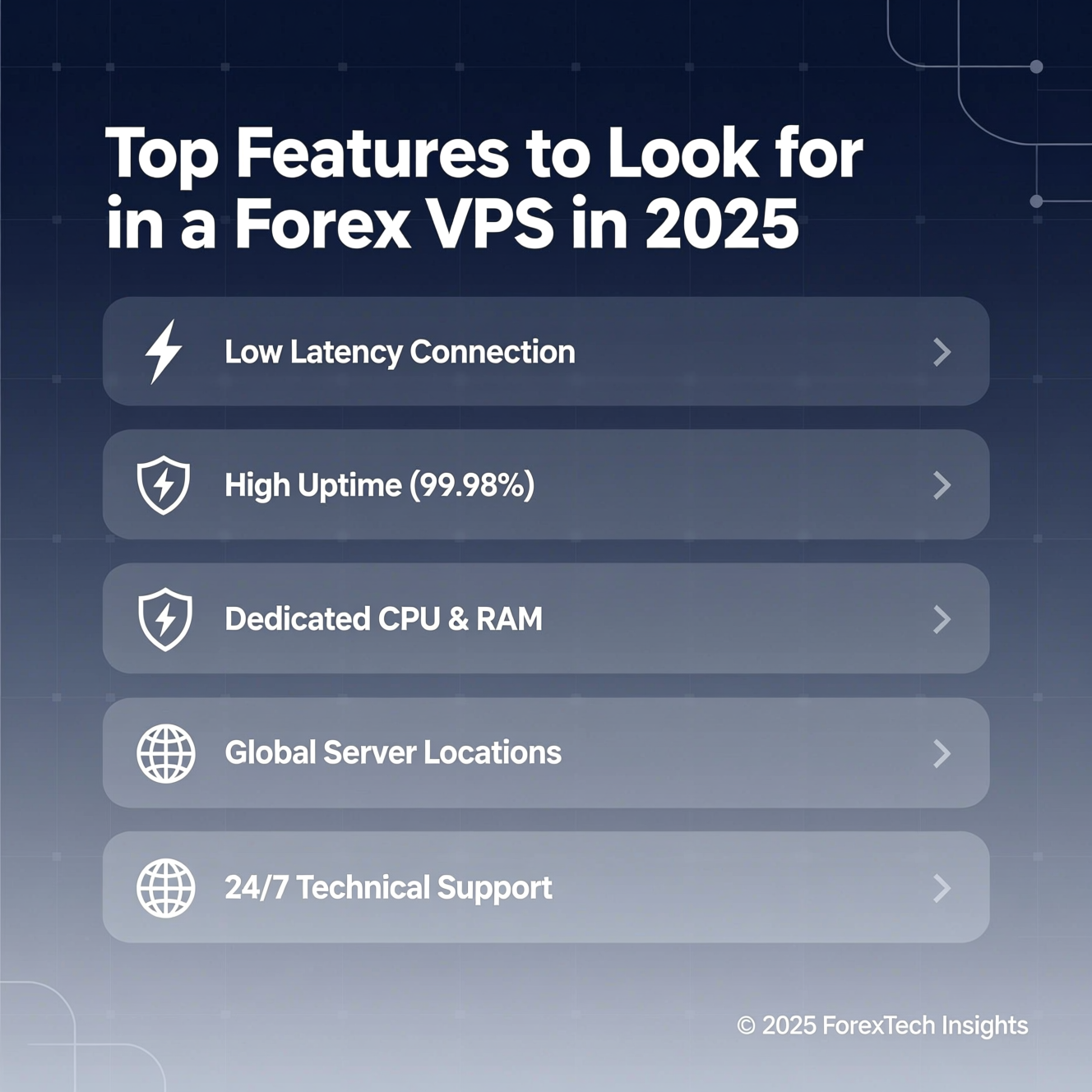لو بتدور على أفضل Forex VPS في سنة 2025، ركّز على العناصر الخمسة دي: