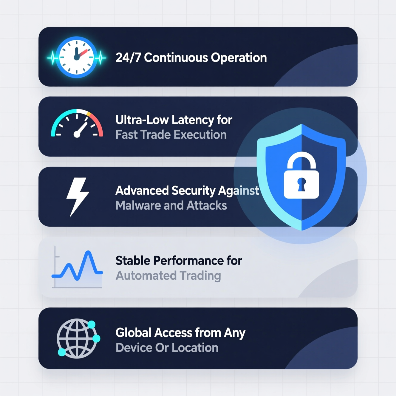 الـVPS ليس أداة للتلاعب أو الغش، بل هو ببساطة أداة تقنية تساعد المتداول على ضمان استمرار عمل المنصة حتى أثناء انقطاع الإنترنت أو الكهرباء.