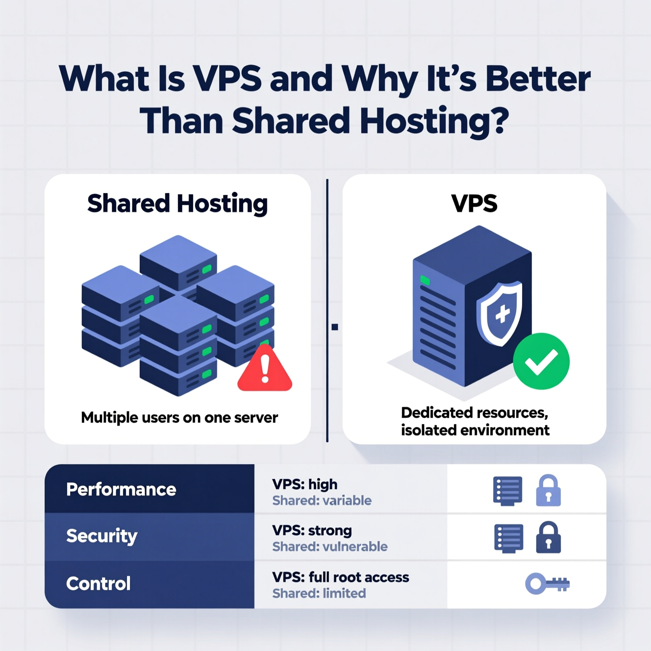 أمان أعلى: لو عندك متجر إلكتروني أو بيانات حساسة، فـ VPS بيوفر حماية أقوى.