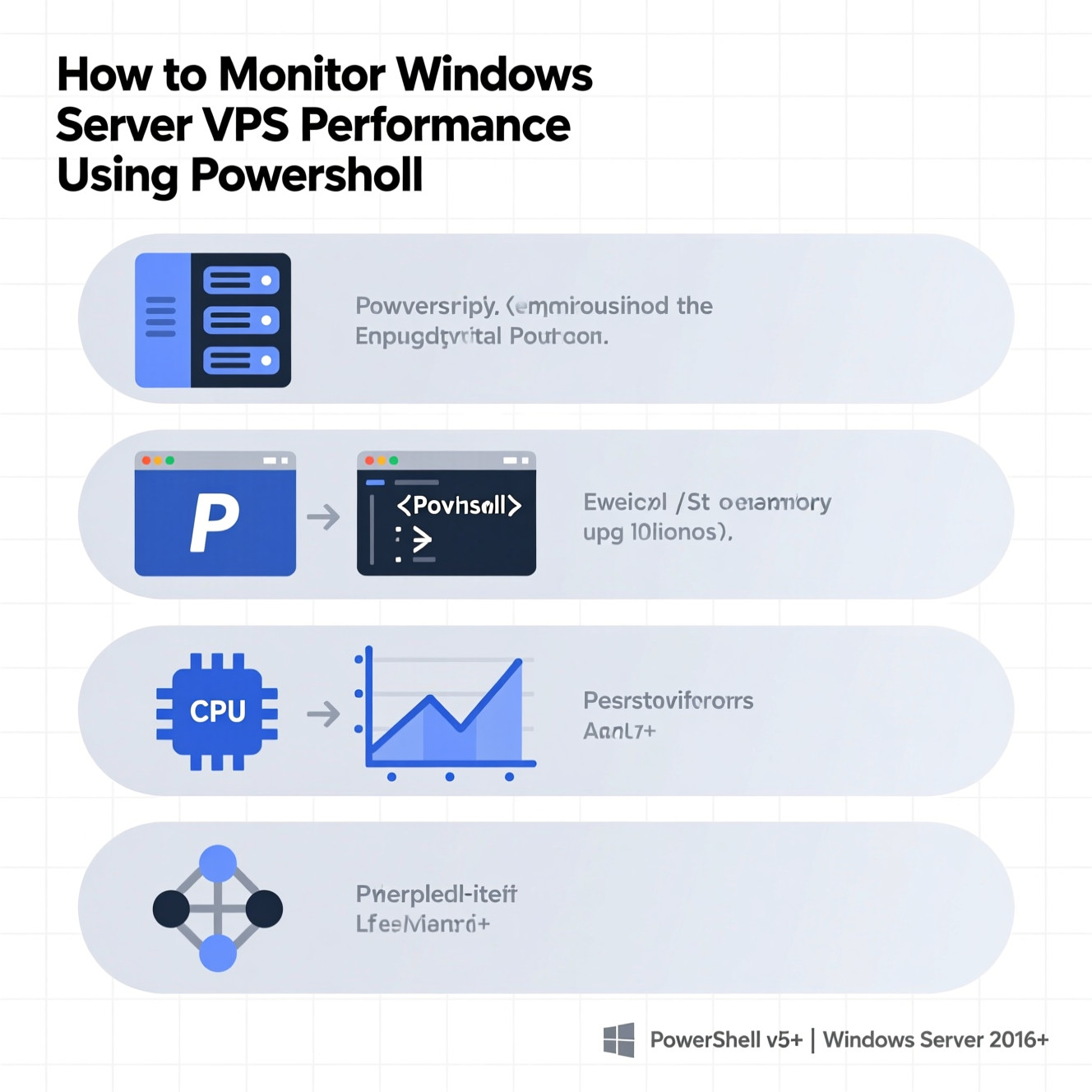 في بيئة Windows Server VPS، تعد مراقبة الأداء من أهم المهام التي تضمن استقرار الخادم وكفاءة موارده. باستخدام PowerShell، يمكنك الحصول على تقارير دقيقة عن CPU وRAM وDisk، مع إمكانية أتمتة جمع البيانات وجدولتها للتقارير الدورية.