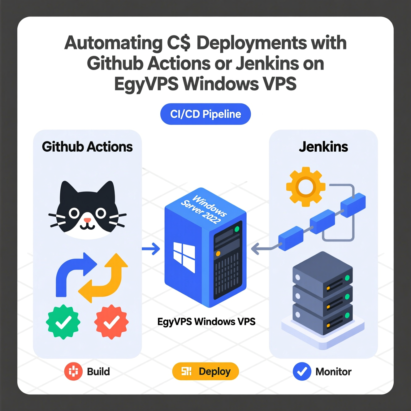 Learn how to automate your C# and .NET deployments using GitHub Actions or Jenkins on EgyVPS Windows VPS to speed up development and ensure secure, stable performance.