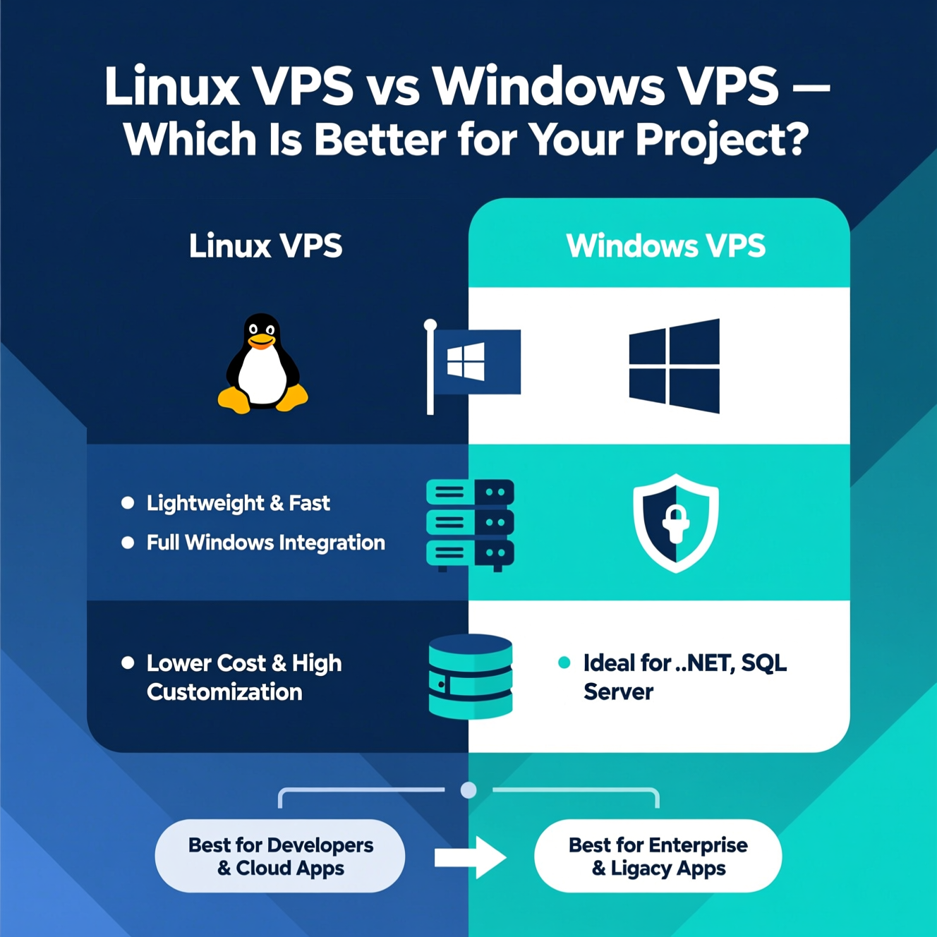 Choosing between Linux VPS and Windows VPS can be confusing — but understanding their differences in performance, flexibility, and cost will help you make the right decision for your business or website.