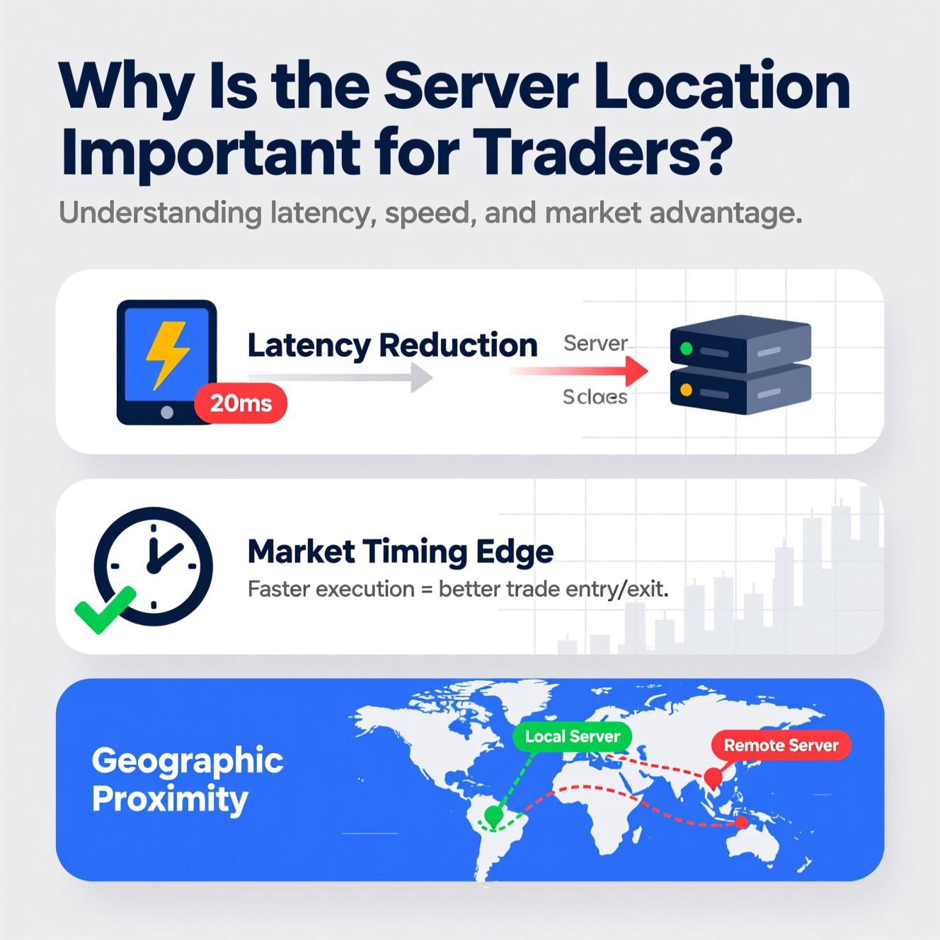 موقع السيرفر يحدد بشكل مباشر جودة التداول من حيث: